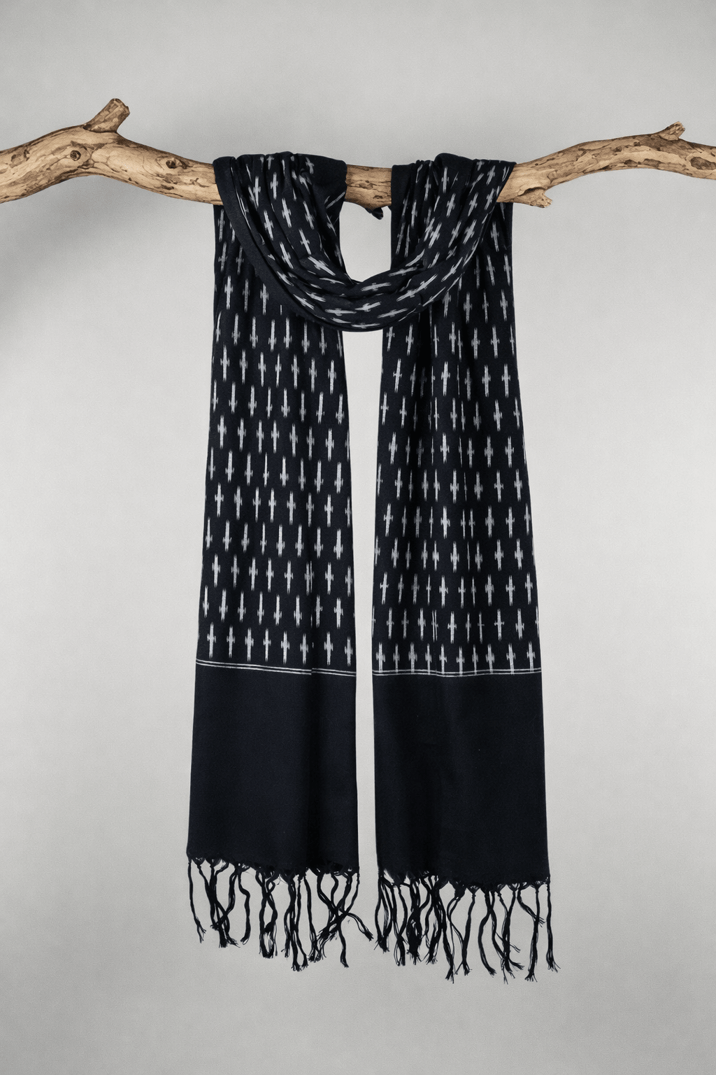 1 review Regular price $26.00 Save $-26.00The Classic Black Scarf is a sustainable scarf featuring a subtle ikat pattern with tasseled ends for added detail. It pairs beautifully with the pieces already in your closet, adding a light layer and a little something special to your outfit.