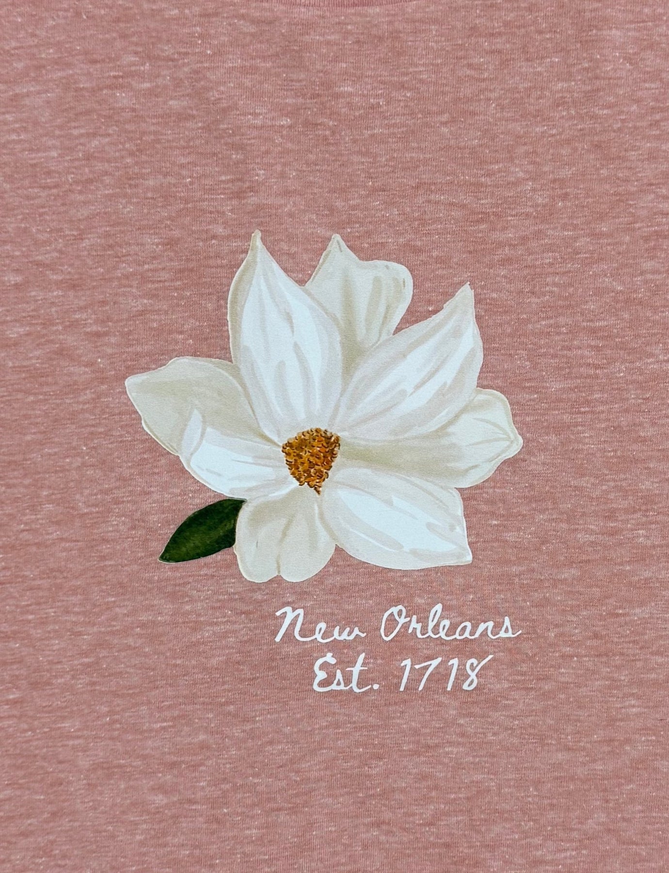 Celebrate the beauty of New Orleans with our classic magnolia tee, featuring the city's iconic bloom alongside "New Orleans Est. 1718." This relaxed-fit shirt honors New Orleans timeless elegance while supporting artisans in Haiti.