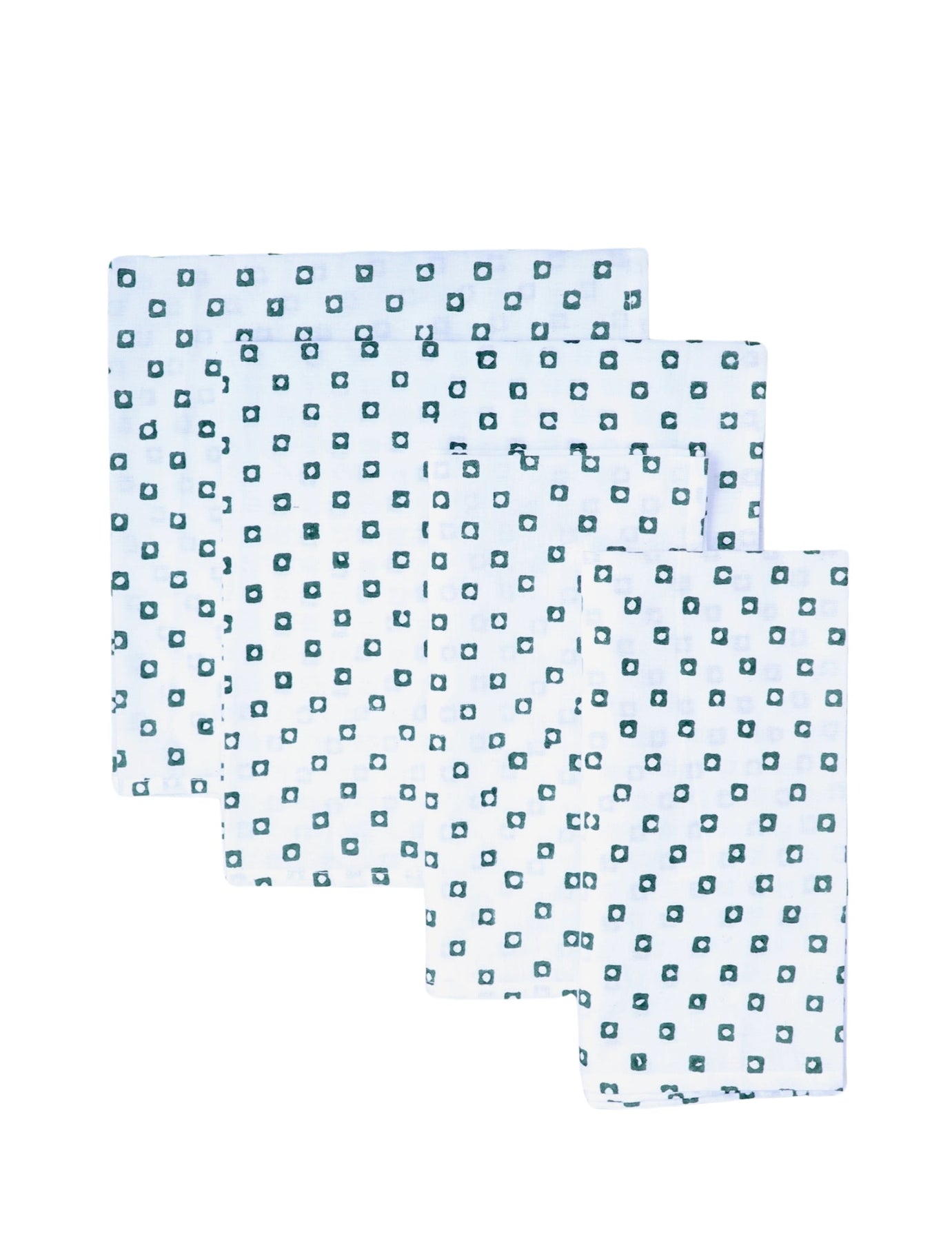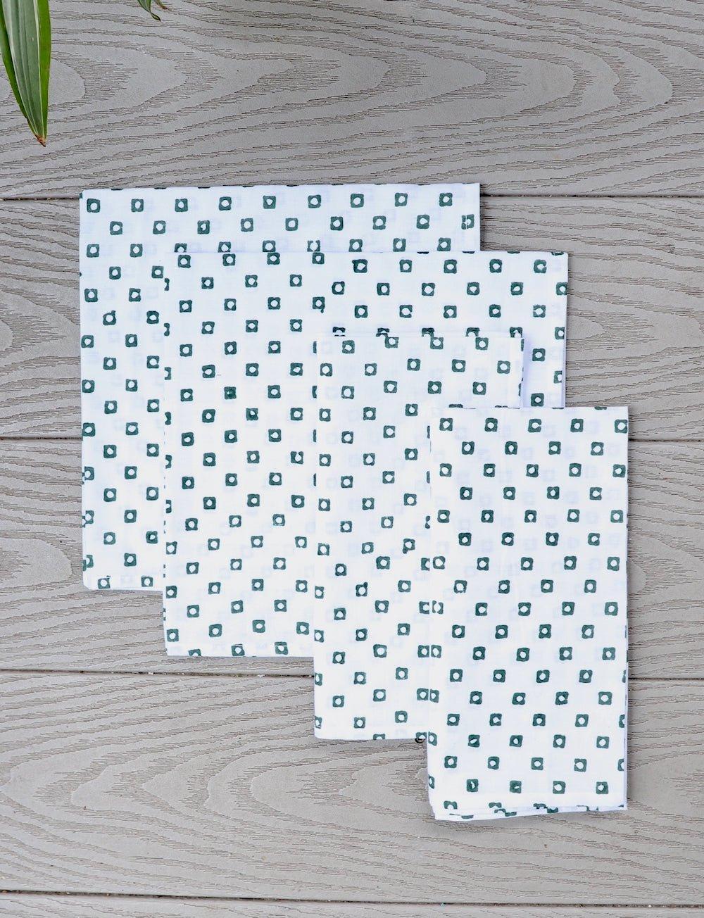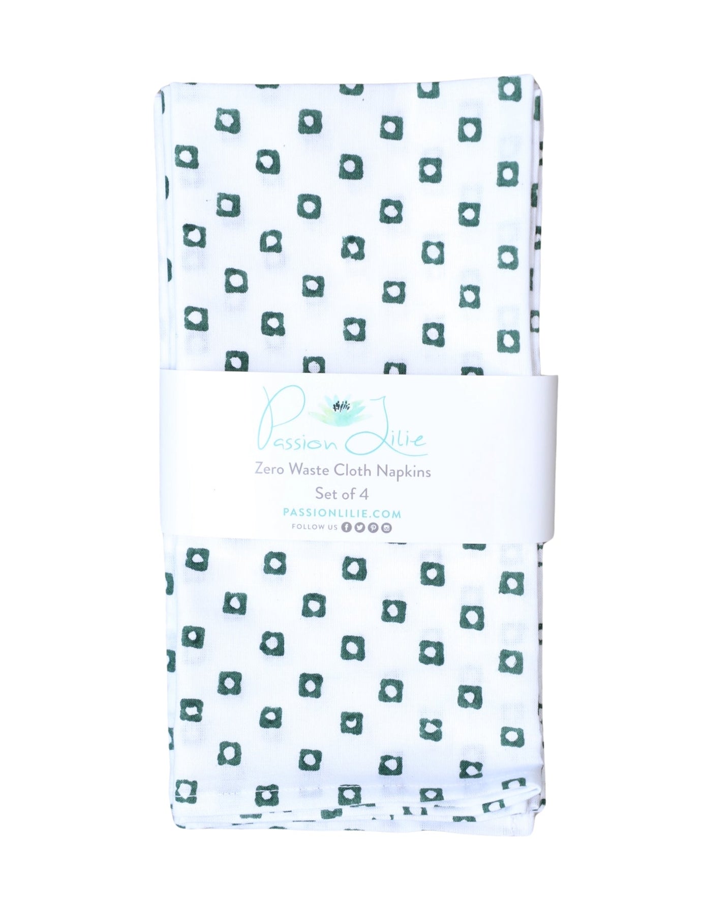 Regular price $36.00 Save $-36.00Say no to paper with these adorable cloth napkins with a green square print. Perfect for making dinner a little more special and eco-friendly! Made from leftover scrap fabrics from production, these green square print cloth napkins help us reach our mission of being a zero waste company.