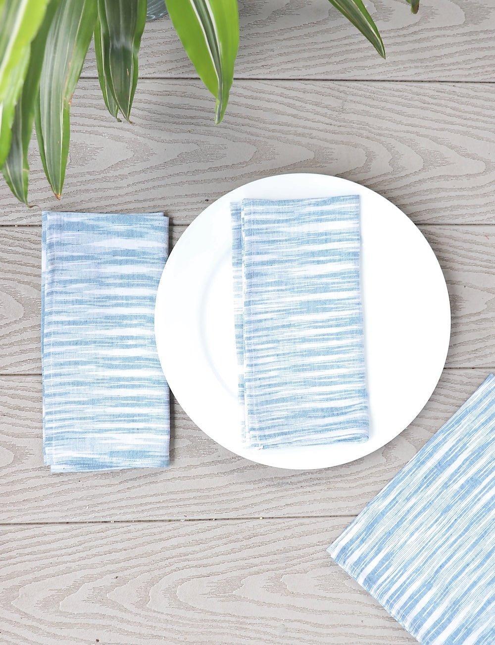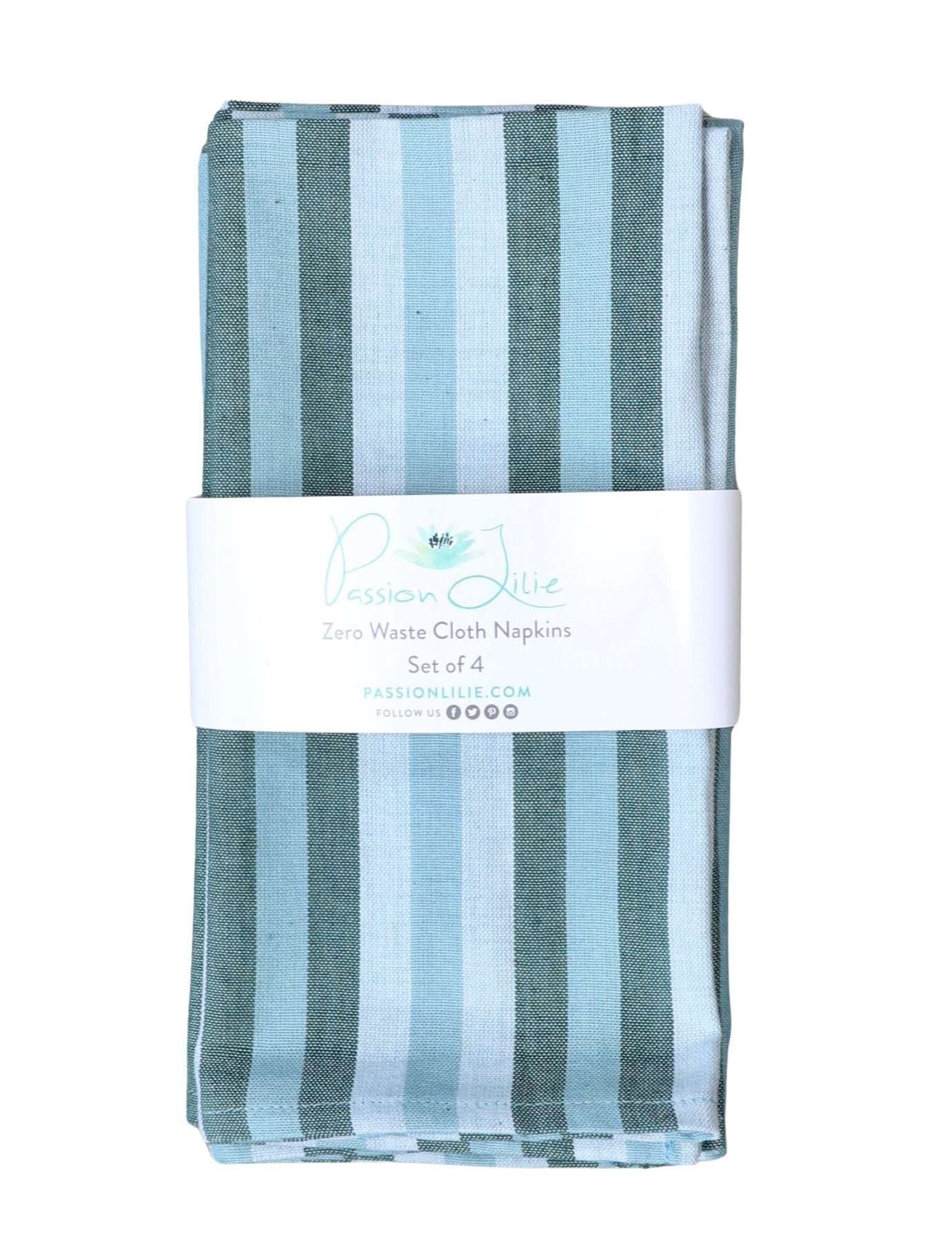 2 reviews Regular price $36.00 Save $-36.00Say no to paper with these adorable green and blue striped cloth napkins. Perfect for making dinner a little more special and eco-friendly! Made from leftover scrap fabrics from production, these green and blue striped cloth napkins help us reach our mission of being a zero waste company.