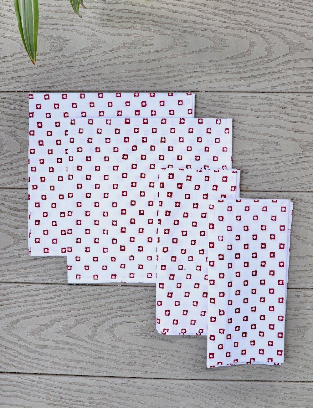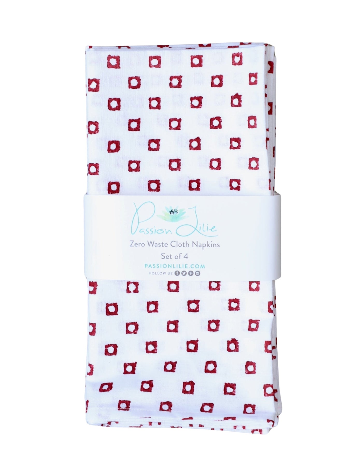 Regular price $36.00 Save $-36.00Say no to paper with these adorable cloth napkins with a red square print. Perfect for making dinner a little more special and eco-friendly! Made from leftover scrap fabrics from production, these red square cloth napkins help us reach our mission of being a zero waste company.