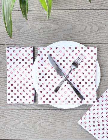 Regular price $36.00 Save $-36.00Say no to paper with these adorable cloth napkins with a red square print. Perfect for making dinner a little more special and eco-friendly! Made from leftover scrap fabrics from production, these red square cloth napkins help us reach our mission of being a zero waste company.