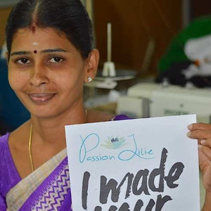 Fair trade is a trade-based movement that focuses on creating long-term relationships based on transparency, trust, and respect. As a fair trade company, Passion Lilie currently works with several producer groups in India. We pay fair wages and work with organizations that ensure safe and healthy working conditions. Building long-term sustainable relationships is important to us because we believe community building is key to nurturing equity in every aspect of how we operate.